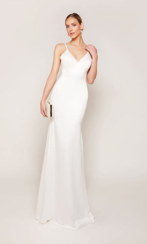 The straight/sheath (or column) silhouette gracefully skims to show off your body’s natural shape. A person with a thicker waist and wider hips will love this silhouette as it hides these flaws very comfortably. An ALYCE Paris formal straight/sheath evening dress style’s straight lines lengthen—and lend an effortless and modern air.