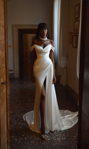 ALYCE Paris 7106 Bridal Cowl Neckline Slit Straight Dress