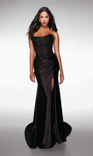 The straight/sheath (or column) silhouette gracefully skims to show off your body’s natural shape. A person with a thicker waist and wider hips will love this silhouette as it hides these flaws very comfortably. An ALYCE Paris formal straight/sheath evening dress style’s straight lines lengthen—and lend an effortless and modern air.