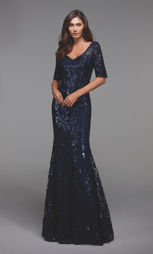 The straight/sheath (or column) silhouette gracefully skims to show off your body’s natural shape. A person with a thicker waist and wider hips will love this silhouette as it hides these flaws very comfortably. An ALYCE Paris formal straight/sheath evening dress style’s straight lines lengthen—and lend an effortless and modern air.