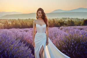 Bodice with structural boning, and a lace up back, minimizing the need for alterations, for a more perfect fit! Corsets are particularly desirable on bridal, ball gown, grad or debutante dresses as they ensure a custom fit.