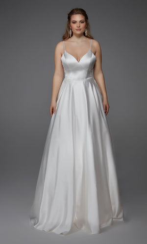 Duchess Alert! A wedding fit for a royal bride is beholden to one of our beautiful ALYCE Paris bridal dresses. ALYCE Paris unique wedding dresses are sure to allure on your big day at price points under $1,000. Find your perfect dream wedding dress available online in our bridal collection in a variety of styles, including black wedding dresses, long sleeve wedding dresses, plus size wedding dresses, even beach wedding dresses. Secret pro tip: call your local retailer to check if this dress can be a custom cut wedding dress in ivory, change the back or add a train! If you find the perfect long white dress, you can always cut down your long formal evening gown into any shapes of short bridal dresses as a last-ditch option!