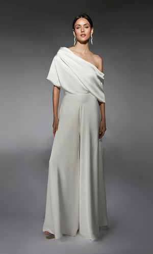ALYCE Paris 70072 Bridal One Shoulder Neckline Elegant Jumpsuit Dress