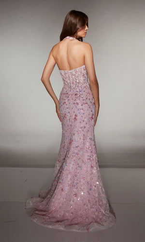 ALYCE Paris 62044 Alyce Long Halter Neckline Embellished Straight Dress