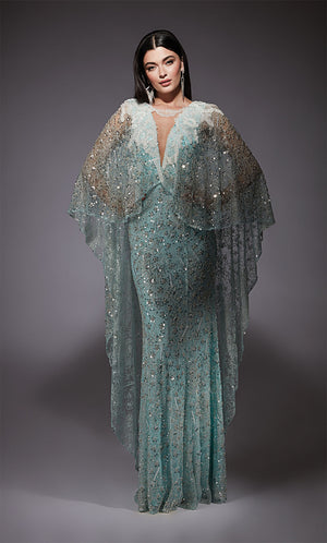 This 2023 super trend features a deep “V” shape down the chest and can be either demure or deeply cut. V necks are increasingly popular with A-line silhouettes, as they add drama and sexiness to the overall dress style, and sometimes covered with illusion fabric so there’s no need to worry about a fashion malfunction. This very trendy and sometimes sexy evening gown is especially flattering on petites to elongate their torso.