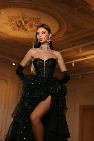 • Details: Lace Appliques On Top, Layered Skirt, Slit,train