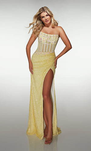The straight/sheath (or column) silhouette gracefully skims to show off your body’s natural shape. A person with a thicker waist and wider hips will love this silhouette as it hides these flaws very comfortably. An ALYCE Paris formal straight/sheath evening dress style’s straight lines lengthen—and lend an effortless and modern air.