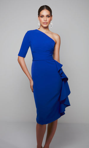 ALYCE Paris 70006 Bridal One Shoulder Neckline Ruffles Straight Dress