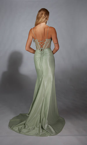 The straight/sheath (or column) silhouette gracefully skims to show off your body’s natural shape. A person with a thicker waist and wider hips will love this silhouette as it hides these flaws very comfortably. An ALYCE Paris formal straight/sheath evening dress style’s straight lines lengthen—and lend an effortless and modern air.