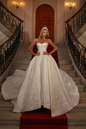 Bodice with structural boning, and a lace up back, minimizing the need for alterations, for a more perfect fit! Corsets are particularly desirable on bridal, ball gown, grad or debutante dresses as they ensure a custom fit.