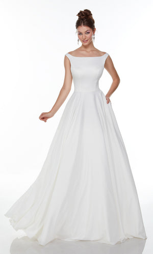 ALYCE Paris 7054 Bridal Boat Neckline Buttons A Line Dress