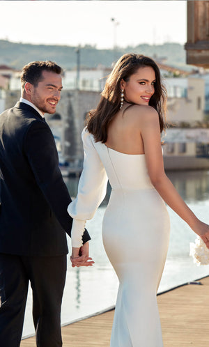 Duchess Alert! A wedding fit for a royal bride is beholden to one of our beautiful ALYCE Paris bridal dresses. ALYCE Paris unique wedding dresses are sure to allure on your big day at price points under $1,000. Find your perfect dream wedding dress available online in our bridal collection in a variety of styles, including black wedding dresses, long sleeve wedding dresses, plus size wedding dresses, even beach wedding dresses. Secret pro tip: call your local retailer to check if this dress can be a custom cut wedding dress in ivory, change the back or add a train! If you find the perfect long white dress, you can always cut down your long formal evening gown into any shapes of short bridal dresses as a last-ditch option!