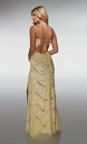 ALYCE Paris 62016 Alyce Long V-neckline Slit Straight Dress