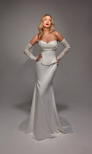 Bodice with structural boning, and a lace up back, minimizing the need for alterations, for a more perfect fit! Corsets are particularly desirable on bridal, ball gown, grad or debutante dresses as they ensure a custom fit.