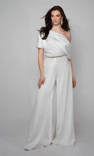 ALYCE Paris 70019 Bridal One Shoulder Neckline Ruched/draped Jumpsuit Dress